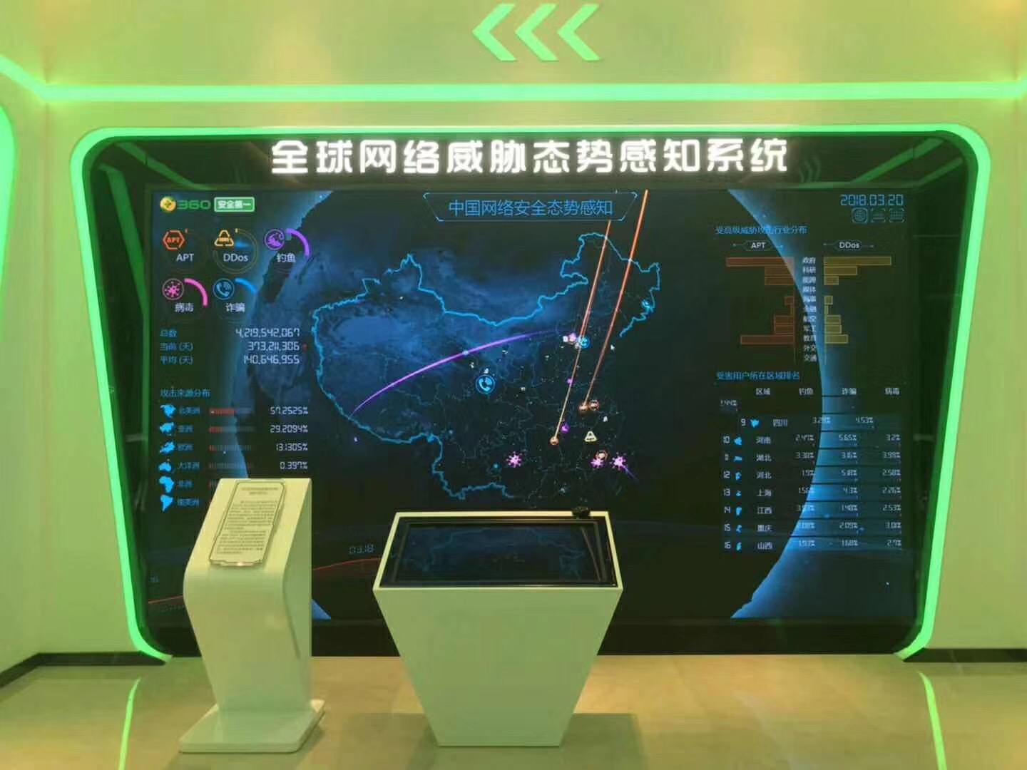 福建南平360網(wǎng)絡(luò)威脅態(tài)勢感知系統(tǒng)1.667顯示屏